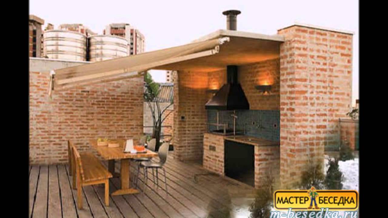 Еще один вариант кирпичного мангала в беседке представлен на видео. Объяснений нет, но все достаточно ясно и никаких сложностей в этом проекте нет. Пожалуй, следует сказать, что начиная с 52 секунд укладывается 4 распиленных кирпича.У них передняя верхняя часть срезана под углом 45 °. На видео отпиленные детали имеют более светлый оттенок.