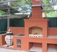 Это сооружение более монументальное — свод у топки круглый, рядом с ним печка.Без всякого опыта справиться будет сложно.