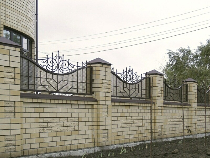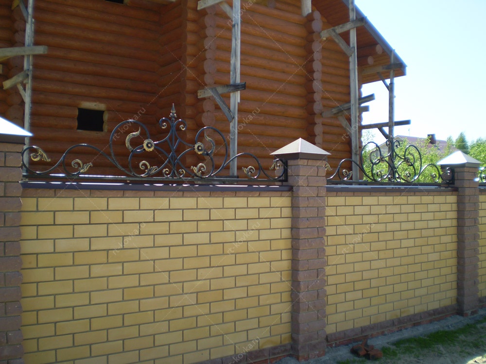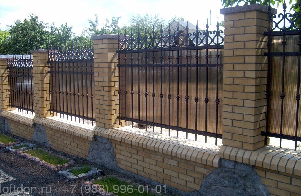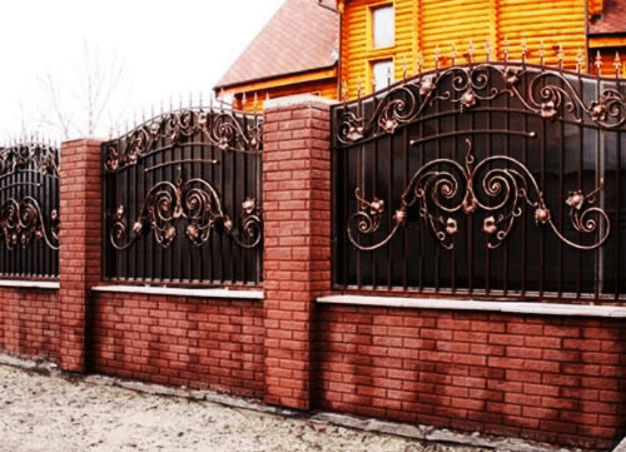 Кирпичные заборы с элементами ковки