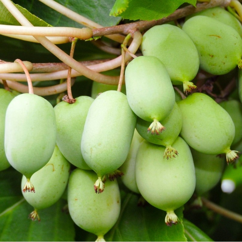 Выносливые плоды киви созревают с конца лета до поздней осени, в зависимости от сорта и местных погодных условий. Плоды опадают или легко отрываются, когда полностью созреют. Тем не менее, их обычно собирают на стадии зрелости и дают им созреть на лозе, как и коммерческим сортам. Купленные в магазине киви готовы к употреблению, когда они становятся слегка мягкими на ощупь. Чем тверже мякоть, тем терпче будет вкус. Чтобы ускорить процесс созревания, поместите фрукты в миску с фруктами, вырабатывающими этилен, такими как яблоки, груши или бананы.