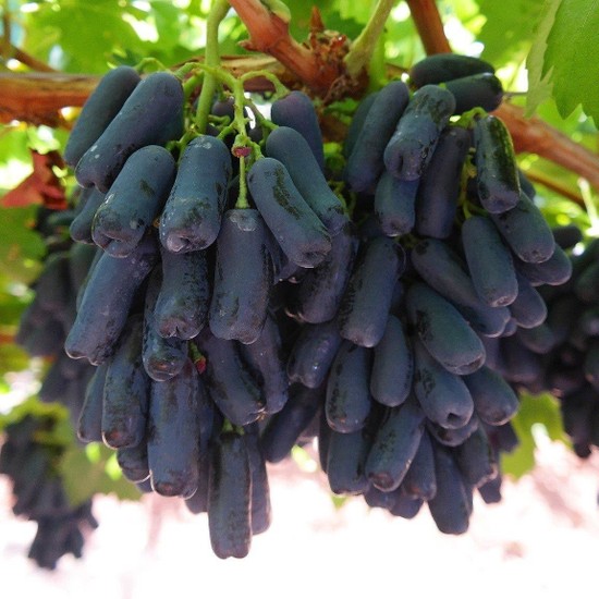 Бессемянный сорт винограда. Гибрид сорта «Молоко» и «Осенний королевский». Вес кисти от пятисот грамм до полутора килограмм. Ягоды продолговатые, цилиндрические, весом 7,5 грамма, при применении стимулятора роста – 13 грамм. Цвет ягод фиолетово-черный. Содержание сахара 21-26%. Размер урожая и склонность к заболеваниям зависит от качества ухода.