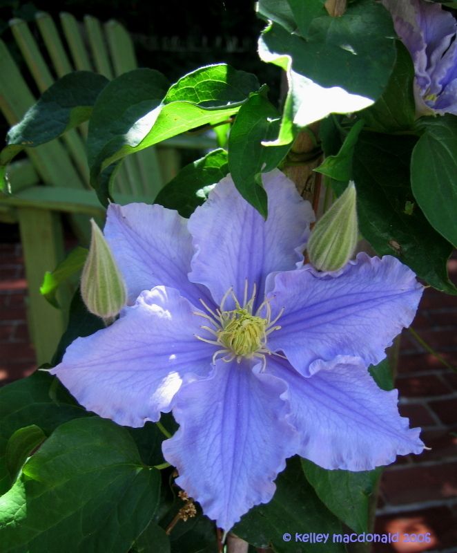 Главная его отличительная особенность — нежный лавандовый светящийся цвет. Пожалуй близко к этому цвету у меня только еще Зе Фирст Леди (Первая Леди). Этот клематис очень изменчив. Иногда он бывает просто светло голубым и выгорает на солнце практически до белого.