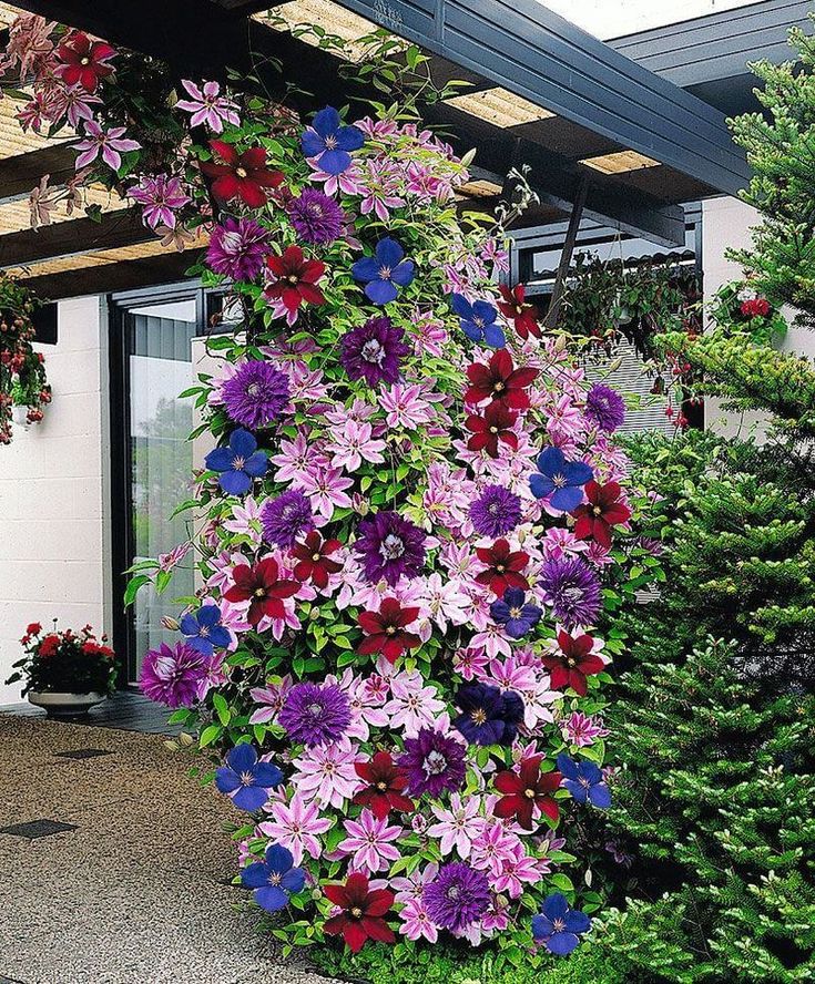 Голые стены: Установите решетку возле дома или гаража и посадите клематисы, чтобы добавить текстуру и добавить ярких красок.