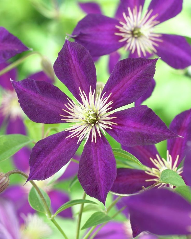 Лепестки фиолетовые, разделены друг от друга, что придает им дополнительную привлекательность. Этот сорт нуждается в регулярной обрезке.