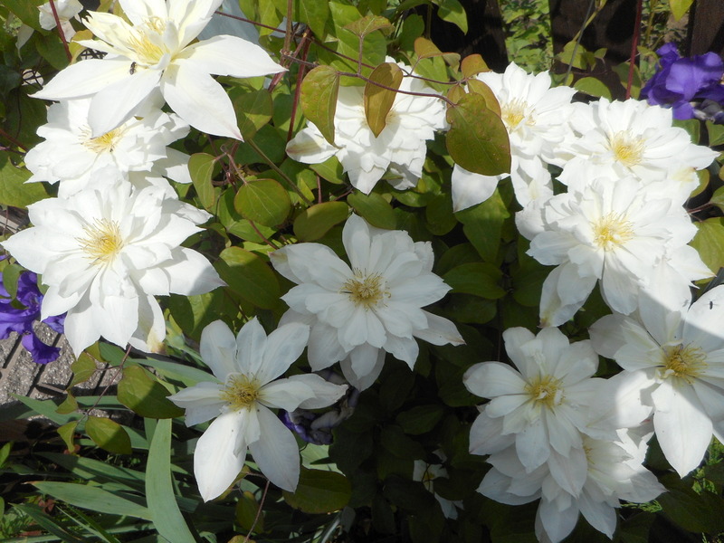 Сортов клематисов с белыми цветами, которые относятся к 2 группе обрезки очень много. В нашем климате  сохранить побеги даже при хорошем укрытии получается не всегда. Весной на побегах прошлого года будут махровые и полумахровые цветы. А количество их будет зависеть от того, как перезимовали плети.