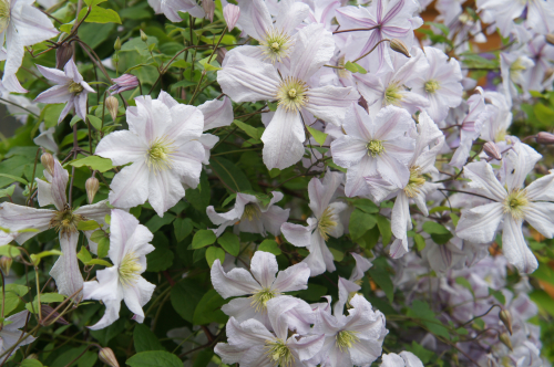 Fargesioides – этот сорт клематиса отличается тем, что лиана получается очень мощной и сильно разрастается, так что периодически этот цветок будет нуждаться в обрезке и формировке, иначе его размеры могут вовсе выйти из под контроля. Листики сочные, темного зеленого оттенка, очень сложной формы и при этом они невероятно крупные. Во время того, как цветок начинает цвести, на нем формируется большое количество кремовых и белых цветков, которые также дают очень притягательный, стойкий, и в то же время очень нежный аромат. Сорт относится к третьей группе обрезки, что отличает его от двух вышеназванных и охарактеризованных сортов клематиса. В целом, этот сорт является одним из самых популярных при выборе клематиса для оформления приусадебного участка или при выборе клематиса для создания декоративной одиночной посадки.