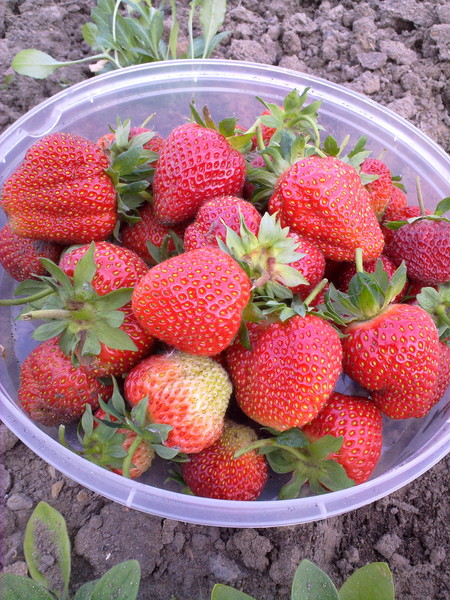 Средняя масса ягод в сезоне 40−60 грамм, при первом сборе они просто огромные — до 120 грамм, а иногда и более. Плоды не мельчают к концу плодоношения, даже самые последние могут иметь вес около 70−90 грамм. Сам же период плодоношения довольно сжатый, клубника весьма быстро отдает весь урожай. Таким образом, подсчитать урожайность одного растения несложно, однако показатель этот может очень сильно варьировать — от 500 грамм до 1,5 кг и более.