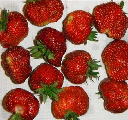 - Часто происходит явление, так называемой, сросшейся ягоды – это, когда два плода срастаются вместе, образовывая один огромный ребристый плод.