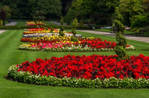 - В оформлении большого объекта не обойтись без сортов разной высоты. Самые высокие обычно располагают в центре.