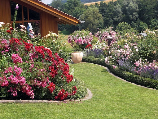 Про основные правила компоновки цветов мы уже написали выше. Также вы можете использовать онлайн-подбор палитры. Это инструмент дизайнеров, но почему бы не применить его в планировании вашего сада? Яркие и крупные сорта обычно располагают в центре, а небольшие по краям. Ландшафтный объект должен быть соразмерен участку.