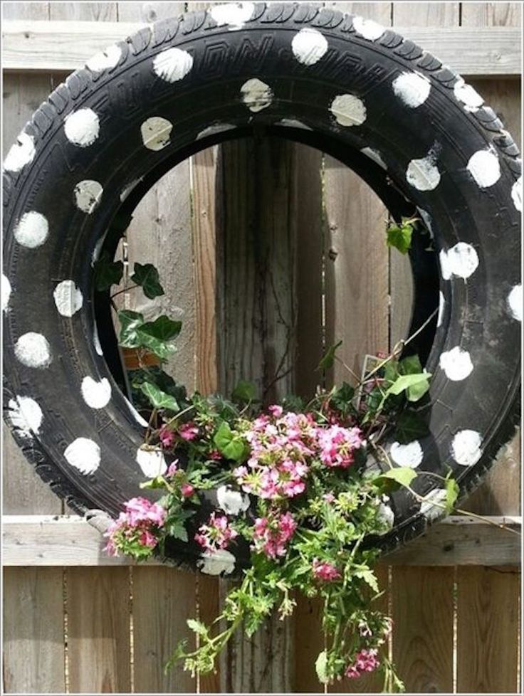 Эта подвесная сеялка, сделанная из старых шин, невероятно проста, но при этом удивительно эффективна. Чтобы добиться этого, просто покрасьте шину в цвет, соответствующий внешнему оформлению вашего дома, надежно привяжите ее к веревке и повесьте снаружи, в вашу собственность. В этом примере создатель использовал искусственные цветы для заполнения шины. Если вы предпочитаете выращивать настоящие растения в своей шине, вам нужно прикрепить заднюю стенку к шине, чтобы предотвратить просыпание почвы.Вы можете использовать кусок фанеры, разрезанный на полукруг и прибитый к задней части шины, или кусок пластика, отрезанный по размеру и закрепленный клеем. Заполните нижнюю половину шины почвой и посадите в нее несколько популярных висячих растений, таких как фуксия или плющ. В качестве альтернативы вы можете использовать такую подвесную шину, чтобы создать праздничный венок.