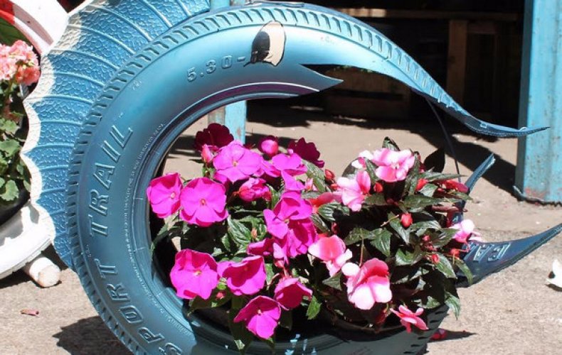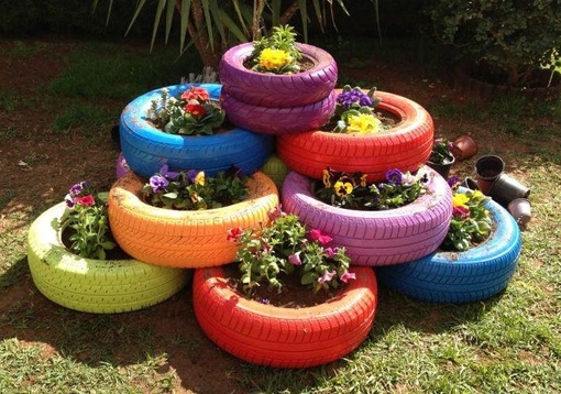 Чтобы избежать лишних денежных трат, возможно самому сделать клумбу для цветов, используя для этого старые покрышки. Этот материал иметься в огромных количествах, на станциях специализирующихся пошиномантожу. Там вы без труда сможете выбрать шины, подходящих для вас размеров, которые уже давно отработали свой срок.