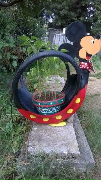 - Копеечная себестоимость. Наверняка среди соседей найдутся автовладельцы, мечтающие расстаться со старыми шинами. Дли них это хлам, а для художника – будущее произведение искусства, которое остается только докатить до участка или привезти в багажнике.