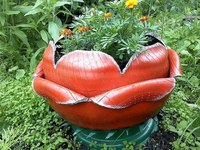 Со временем использованные шины теряют былую жёсткость, поэтому без особых трудностей поддаются обработке. Края вывернутой на изнанку покрышки смотрятся веселей. После это они напоминают листочки деревьев или лепестки цветов. С трудностями возникшими на этом этапе, легко может справится воображение и крепкая рука.