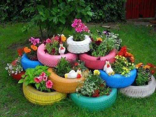 Несколько отличных идей по переработке изношенных автомобильных шин в кашпо для вашего сада.
