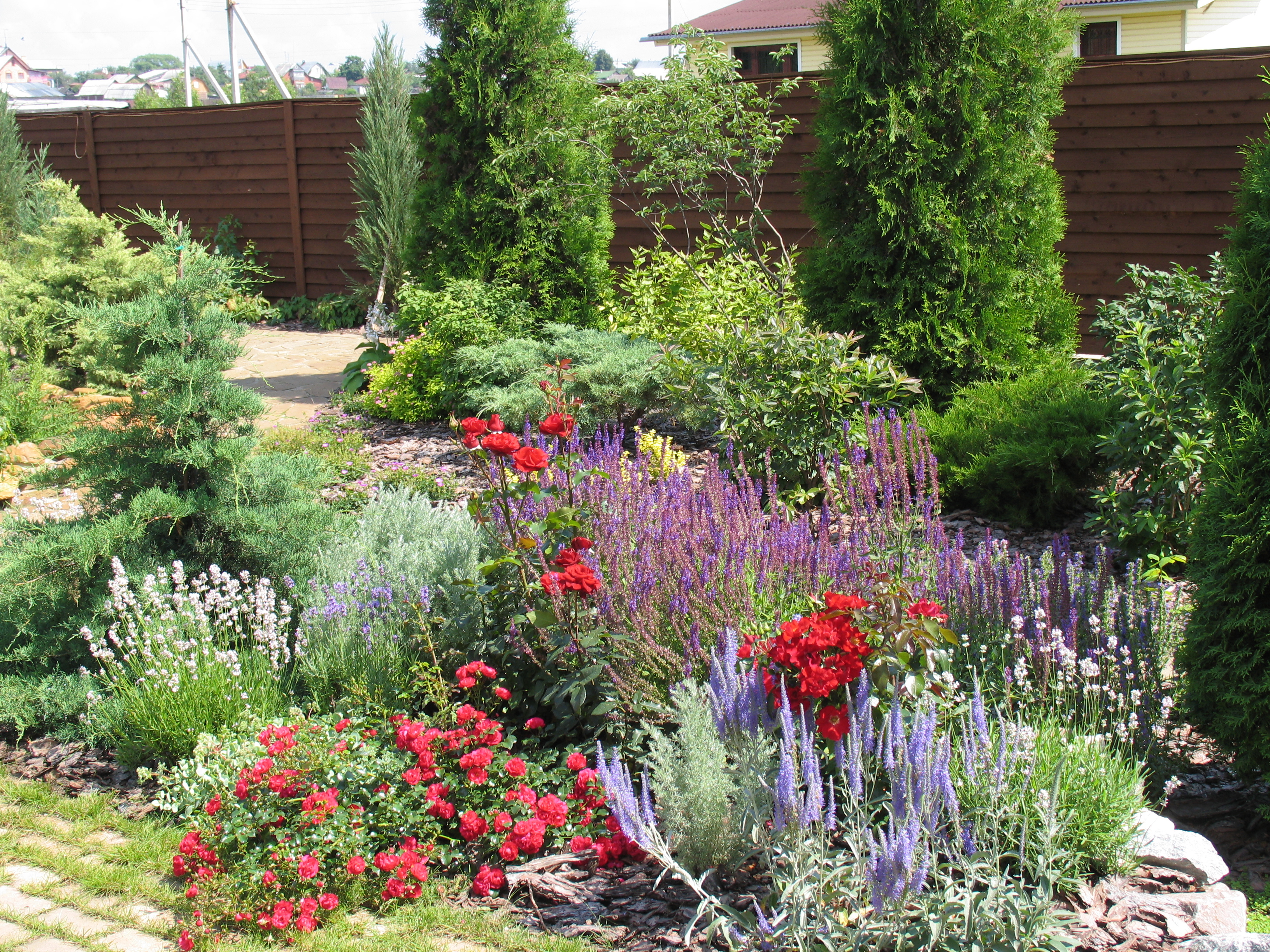 Красивая высокая клумба с многолетниками разной высотыИсточник vsaunu777.