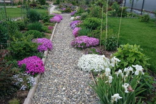 Многолетние цветники с шиловидным флоксомИсточник cveti-rasteniya.ruТреугольная клумба с периодическим затенением