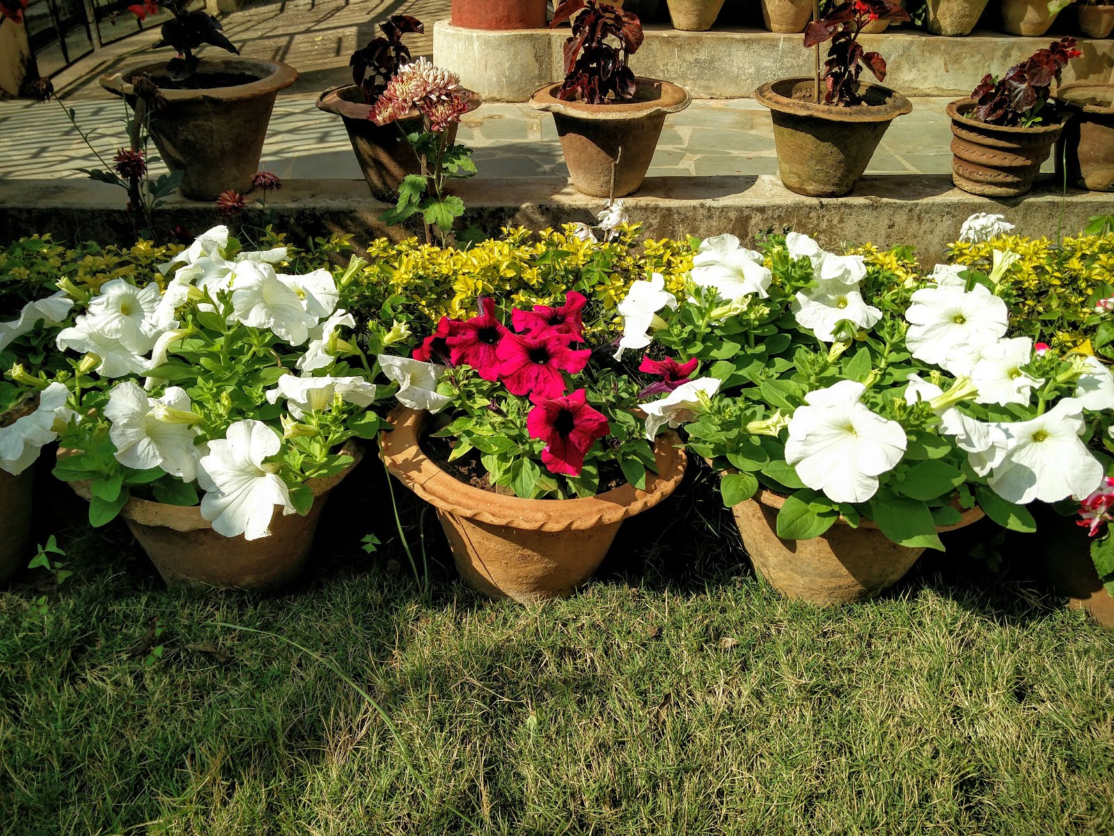 Кустистые, прямостоячие петунии превосходно смотрятся в горшках или посажены в грунт, как часть красочной схемы клумбы или как яркий акцент среди многолетних растений в бордюре.