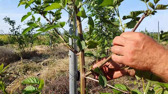 - Этот шаг относится к ежевике с цветущим плодом, ниже мы рассмотрим особенности обрезки ежевики с первоцветом.