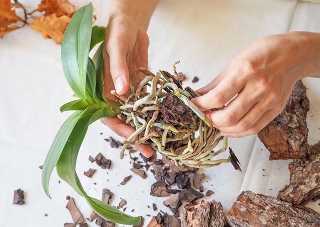 После того, как орхидея будет удалена, осторожно удалите старый мох и кору вокруг ее корней. Как мы упоминали ранее, старые среды портятся или сжимаются, становясь непригодными для дальнейшего роста.