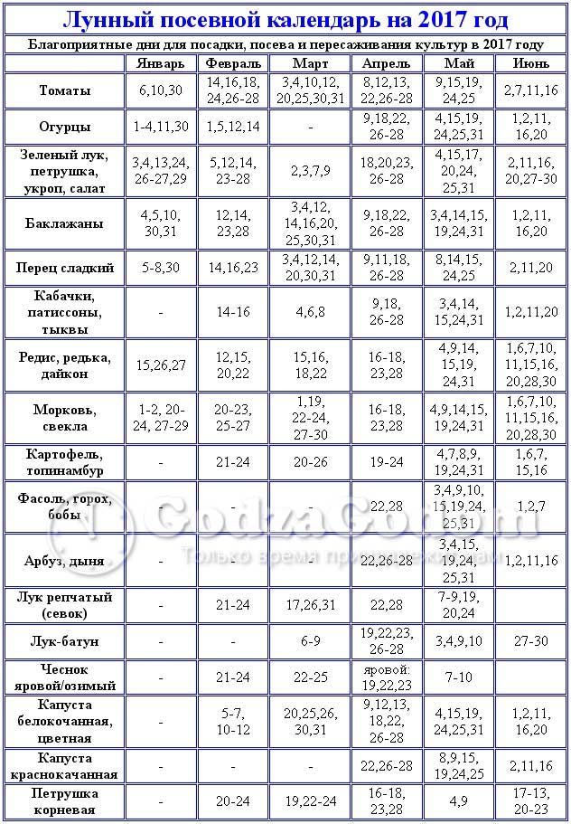Лунный календарь высадок на июнь 2017 года