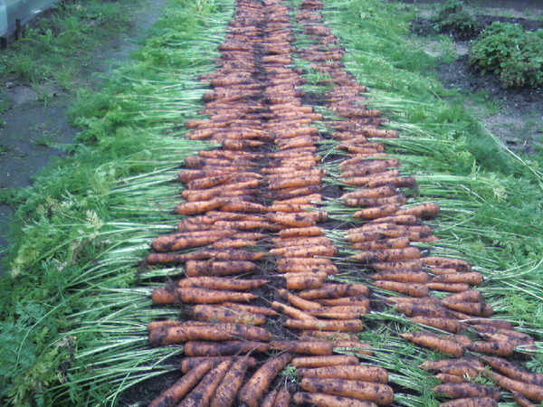 Выкопанную и освобожденную от ботвы морковку подсушивают на солнце. Можно оставить урожай прямо на грядке, если день теплый и солнечный. На ночь овощи обязательно убирают в помещение, иначе они отсыреют от утренней росы или подмерзнут во время ночных заморозков.