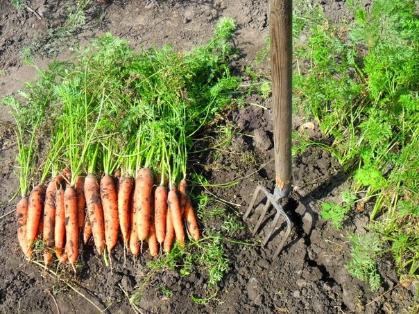 Для уборки рекомендуется использовать вилы, так как лопатой можно повредить плоды. С помощью вил морковь подкапывают, после чего берут ее за ботву и вытаскивают из почвы.
