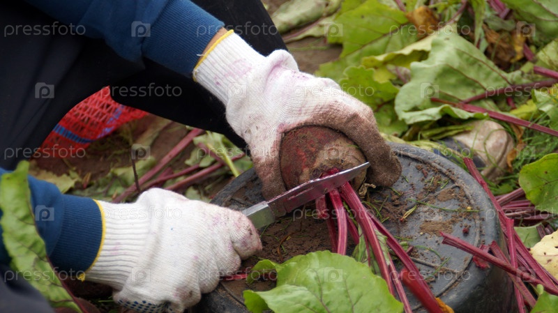 Свеклу лучше выдергивать руками, захватывая за основания листьев, также руками очищать от земли. Ботву у корнеплода обламывают, выкручивая листья, или срезают так, чтобы удалить точку роста. Длинный тонкий хвостик, корешок срезать нельзя.
