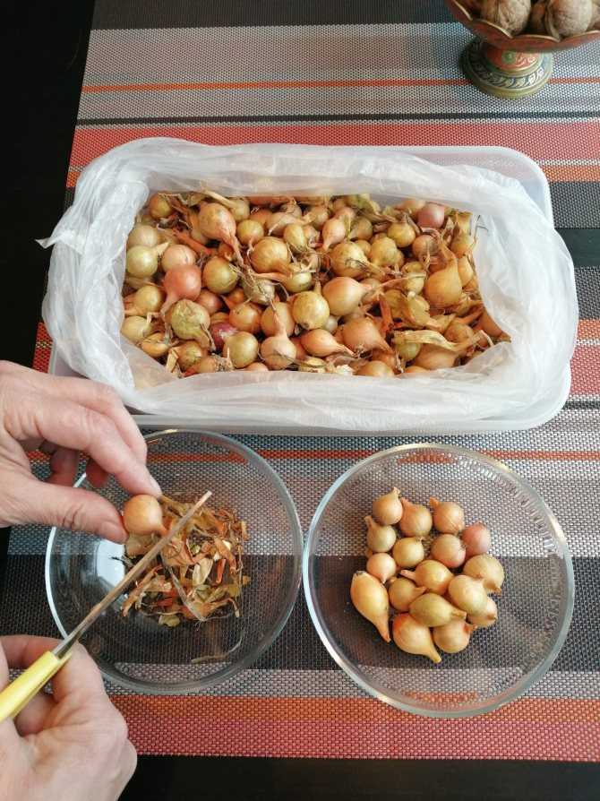 Опытные огородники советуют отбирать для посадки луковки среднего размера, потому что у больших луковиц больше вероятность замерзнуть зимой. Отобранный лук нужно сложить в ящик и поставить в сухое теплое место, где он будет ожидать посадки.