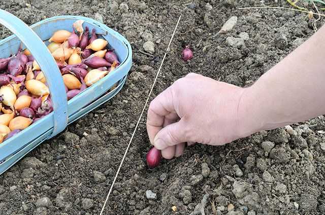 Перед посадкой посевной материал перебирают, калибруют, сажают в бороздки глубиной 5 см на расстоянии 6–7 см между луковичками. Между рядами сохраняют интервал 15 см.