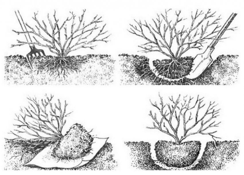 Выкапывая куст, стремимся максимально сохранить корневую систему. Можно воспользоваться следующим приемом, который опытные садоводы применяют для пересадки кустарников.