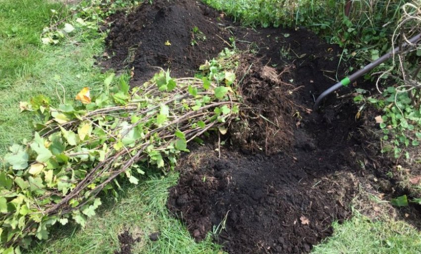 Участок под будущий ягодник перекапывается, чтобы удалить сорняки и корни старых растений.
