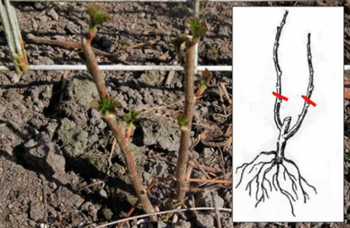 Весной обычно пересаживают укоренившиеся черенки, то есть переносят их из питомниковой траншеи на постоянное место в ягоднике. Если черенки сажали осенью, то весной это будут веточки с 2-3 листиками из почек, оставленных над землей.
