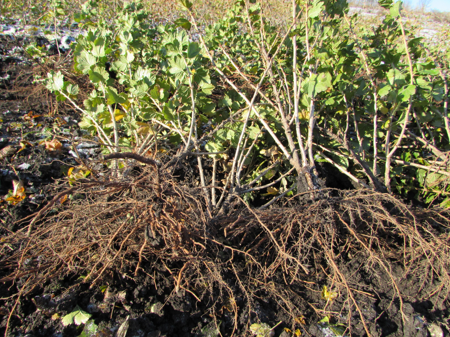 Однако некоторые специалисты рекомендуют пересаживать смородину без кома земли, а наоборот, отряхнуть землю с корней и тщательно проинспектировать их, удалив личинки и других вредителей, а возможно, и поделив куст. Затем корни промывают раствором марганцовки. Этот метод больше подходит для старых кустов, в здоровье которых существуют сомнения. При такой пересадке растение одновременно омолаживают, удаляя старые ветви. Впрочем, некоторой частью веток придется пожертвовать в любом случае, ведь при перемещении взрослого куста особенно важно следить за балансом подземной и надземной частей.
