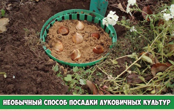 Если у вас не 1–2 луковицы, а целая упаковка, то удобнее всего сажать их в специальных корзинах, которые осенью можно приобрести буквально повсюду (даже в сетевых магазинах). Во‑первых, это поможет облегчить себе жизнь, когда их придётся выкапывать и делить, а во‑вторых, убережёт растения от грызунов.