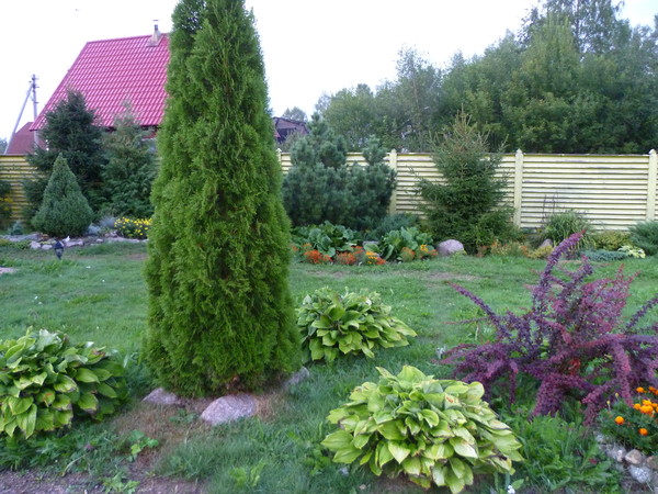 При планировке участка заранее определяют, где будет расти туя. Она медленно растущая и долгоживущая, пересадку переносит плохо, поэтому выбор должен быть окончательным.
