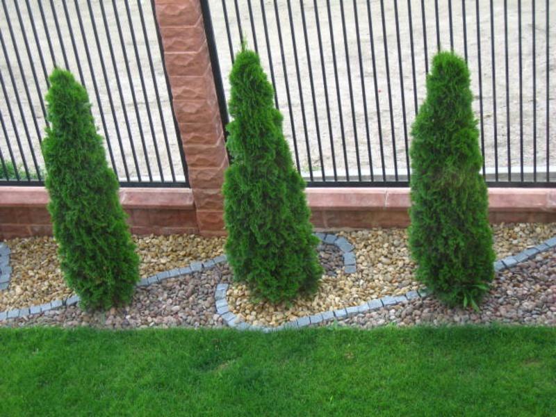 Изумрудно-зеленая туя рекомендуется для следующих ландшафтных работ;