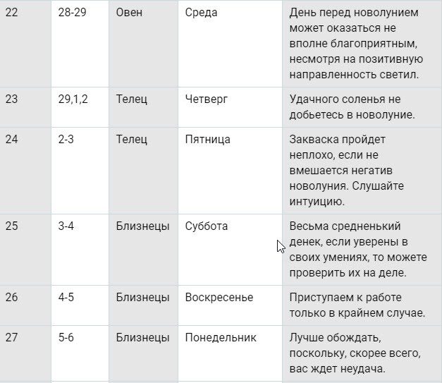 Π‘Π°ΠΌΡΠΌΠΈ Π½Π΅Π±Π»Π°Π³ΠΎΠΏΡΠΈΡΡΠ½ΡΠΌΠΈ Ρ ΡΠΎΡΠΊΠΈ Π·ΡΠ΅Π½ΠΈΡ Π°ΡΡΡΠΎΠ»ΠΎΠ³ΠΈΠΈ Π΄Π½ΡΠΌΠΈ ΡΠ²Π»ΡΡΡΡΡ Π½ΠΎΠ²ΠΎΠ»ΡΠ½ΠΈΠ΅ ΠΈ ΠΏΠΎΠ»Π½ΠΎΠ»ΡΠ½ΠΈΠ΅. Π ΡΡΠΈ Π΄Π½ΠΈ ΡΠΎΠ»ΠΈΡΡ ΠΈ ΠΊΠ²Π°ΡΠΈΡΡ ΠΊΠ°ΠΏΡΡΡΡ ΡΡΡΠΎΠ³ΠΎ Π·Π°ΠΏΡΠ΅ΡΠ΅Π½ΠΎ. ΠΡΠ»ΠΈ Π΅ΡΡΡ ΠΆΠ΅Π»Π°Π½ΠΈΠ΅ ΠΏΠΎΠΏΡΠΎΠ±ΠΎΠ²Π°ΡΡ ΠΎΡΠΈΠ³ΠΈΠ½Π°Π»ΡΠ½ΡΡΒ Π·Π°ΠΊΡΡΠΊΡ, Π° ΠΏΠ΅ΡΠΈΠΎΠ΄ Π½Π΅Π±Π»Π°Π³ΠΎΠΏΡΠΈΡΡΠ½ΡΠΉ, Π΄ΠΎΠΏΡΡΡΠΈΠΌΠΎ Π·Π°ΠΊΠ²Π°ΡΠΈΡΡ ΠΎΠ²ΠΎΡΠΈ ΠΈ ΠΏΡΠΈ ΡΠ±ΡΠ²Π°ΡΡΠ΅ΠΉ ΠΡΠ½Π΅, Π½ΠΎ Π½Π΅Π±ΠΎΠ»ΡΡΡΡ ΠΏΠ°ΡΡΠΈΡ. ΠΡΠ»ΠΈ Π½ΡΠΆΠ½ΠΎ ΡΠ΄Π΅Π»Π°ΡΡ Π·Π°Π³ΠΎΡΠΎΠ²ΠΊΡ Π²ΠΏΡΠΎΠΊ, Π»ΡΡΡΠ΅ Π΄ΠΎΠΆΠ΄Π°ΡΡΡΡ ΠΏΠ΅ΡΠΈΠΎΠ΄Π° ΡΠΎΡΡΠ° ΠΡΠ½Ρ. ΠΠ°ΠΏΡΡΡΠ° Ρ ΠΎΡΠΎΡΠΎΒ Ρ ΡΠ°Π½ΠΈΡΡΡ, ΠΏΠΎΡΡΠΎΠΌΡ ΠΏΡΠΈ Π½Π°Π»ΠΈΡΠΈΠΈ ΠΏΠΎΠ΄Ρ ΠΎΠ΄ΡΡΠΈΡ ΡΡΠ»ΠΎΠ²ΠΈΠΉ ΡΠΏΠΎΡΠΎΠ±Π½Π° ΠΏΡΠΎΠ»Π΅ΠΆΠ°ΡΡ Π΄ΠΎ Π²Π΅ΡΠ½Ρ.