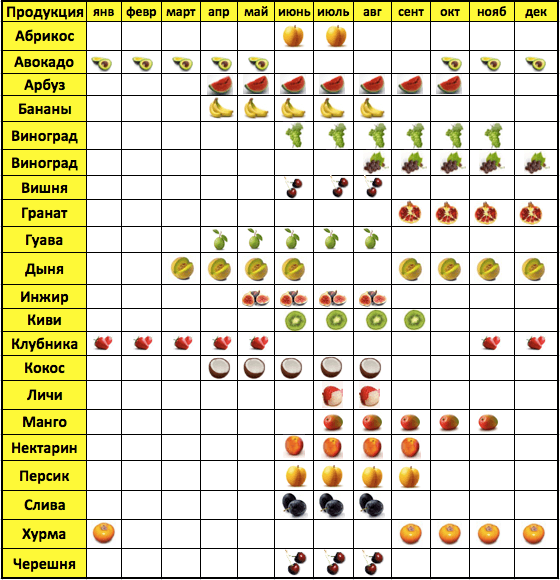 Гранат прекрасно хранится, так что покупать плоды можно круглый год, и сроки созревания зависят от сорта и места произрастания. Но традиционно время сбора граната начинается с середины октября, и считается, что наиболее спелые гранаты продаются в ноябре.