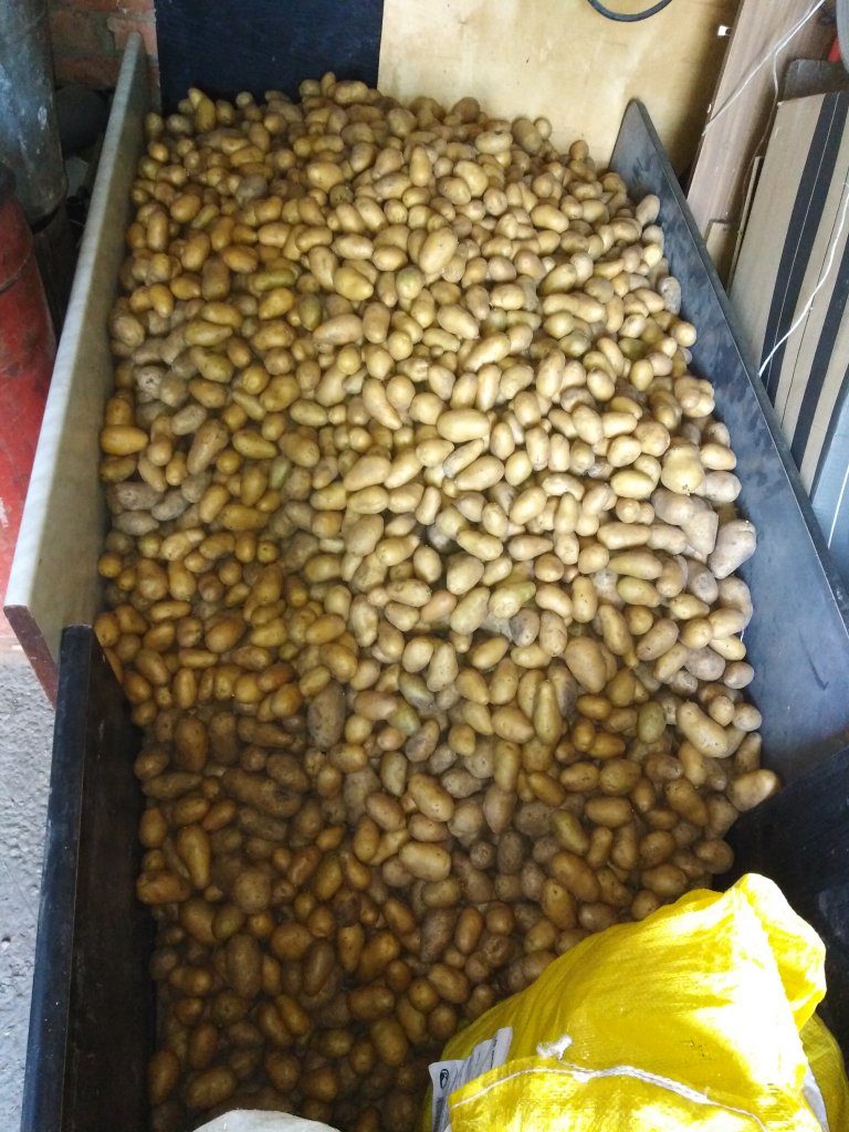 Эффективно убирать не весь куст, а подкапывать по несколько картошин с куста. Также можно убирать через куст, чтобы давать больше свободного места оставшимся растениям.