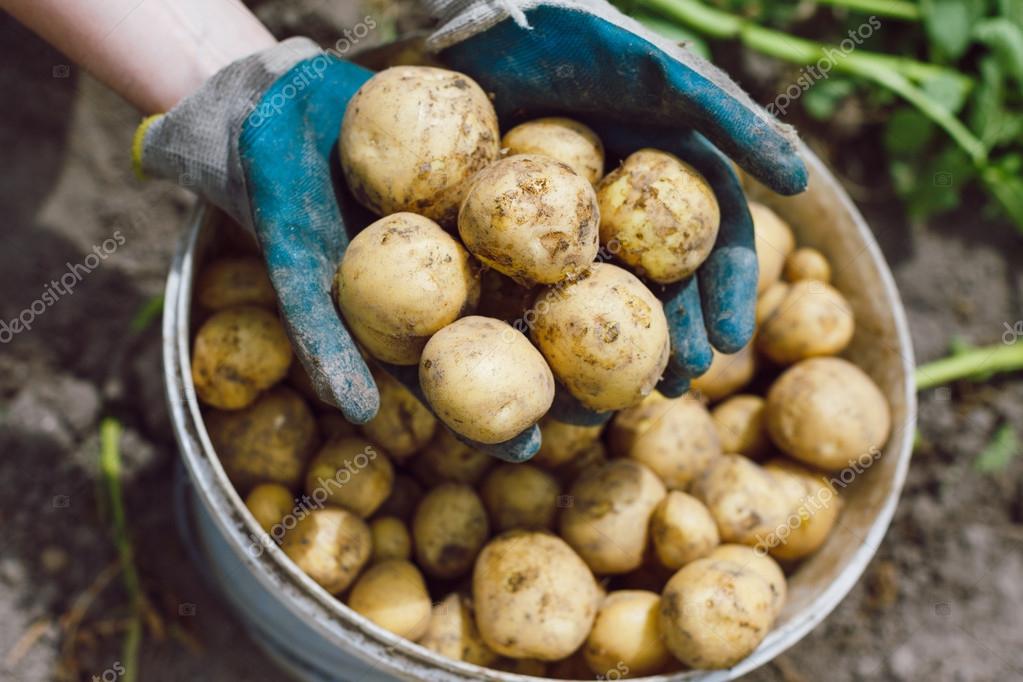 Тем более семья не копает сразу много килограмм картошки на еду. Очень удобно убирать ранний молодой урожай руками. Естественно, используют перчатки, чтобы избежать травм кожи.