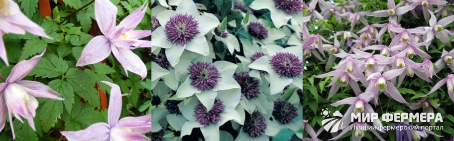 - viticella : «Polish Spirit», «Betty Corning», «Etoille Violette», «Julia Correvon»