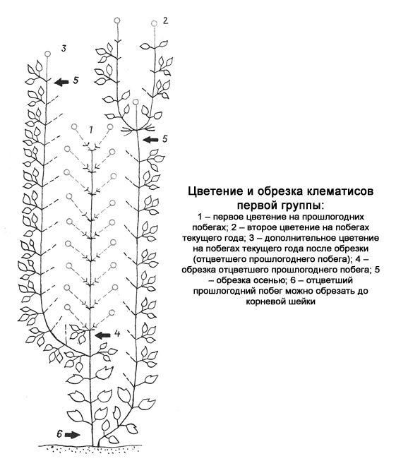 Обрезка клематисов первого года жизни (группы 1, 2 и 3)