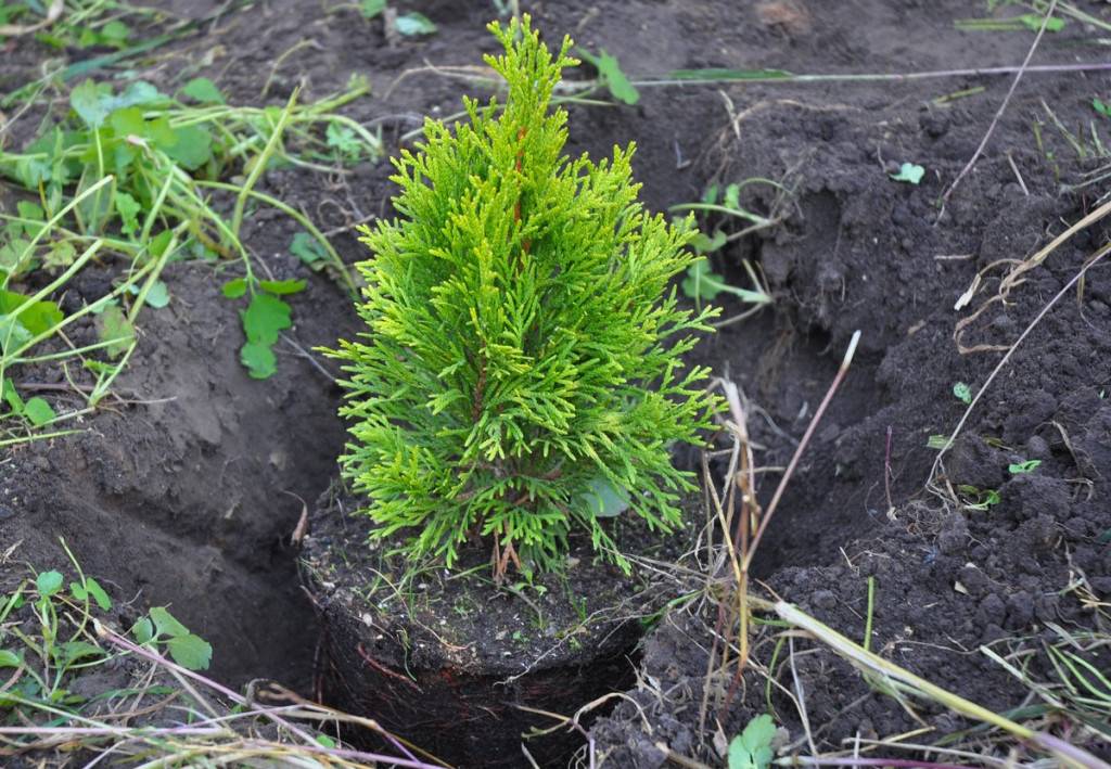 Туи с закрытой корневой системой (обычно их продают в больших горшках) отлично приживаются в любое время года, тогда как растения просто с земляным комом рекомендуется высаживать лишь в период с середины весны до конца лета – иначе не приживутся.