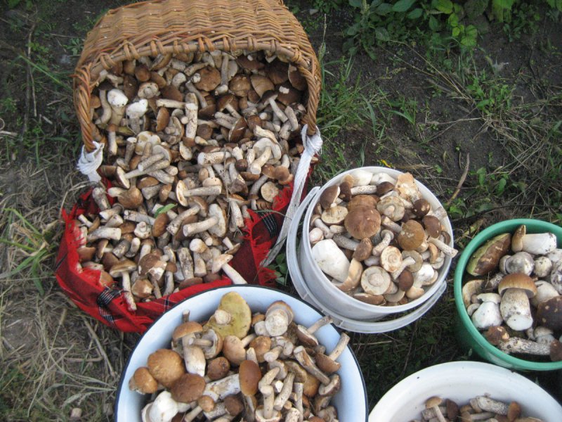 Начиная с конца июня появляется белый гриб. Растет белый гриб и в лиственных лесах, и в хвойных, предпочитает дружить с елью, сосной, дубом и берёзой. Его жарят и варят свежим в супах, тушат в жаркое; сушат, а потом готовят супы, борщи, пекут пироги, делают грибную икру. Белые грибы маринуют и делают из них разные закуски. Белый гриб самым вкусным и полезным грибом считается. Собирают белый гриб с середины июня по конец сентября, наиболее массовый сбор — во второй половине августа.