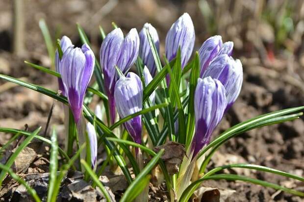 Крокусы запасают питательные вещества в луковицах, поэтому даже после отмирания надземной части могут продолжить рост. На следующий год, когда температура почвы повысится до приемлемого уровня, первоцветы зацветут снова.