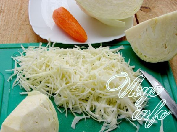 - Затем тонко измельчить оставшуюся капусту и отложить.