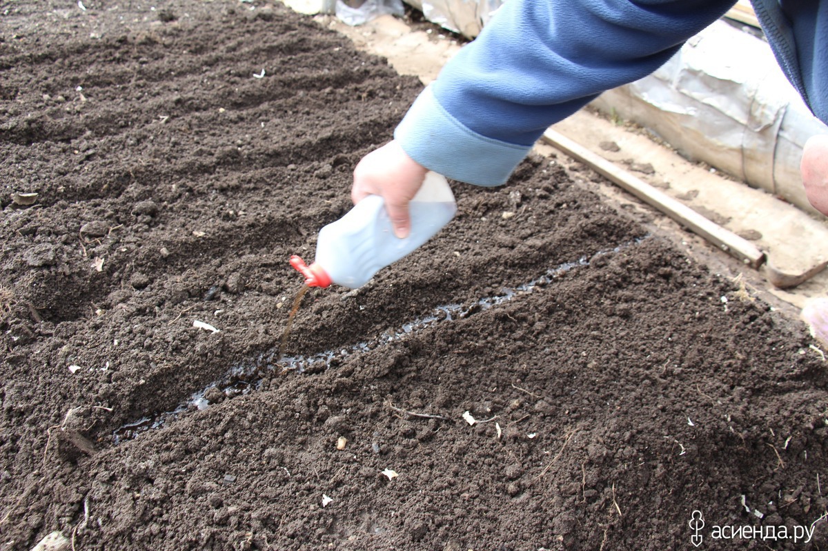 Затем формируют грядки высотой не менее 15 см, чтобы их не размыло дождями и паводками. Грядки подготавливают в октябре, когда почва осела после осенних дождей, но еще не промерзла. Землю разравнивают граблями и наносят бороздки глубиной от четырех до шести сантиметров. Между бороздками оставляют расстояние в 15 см.