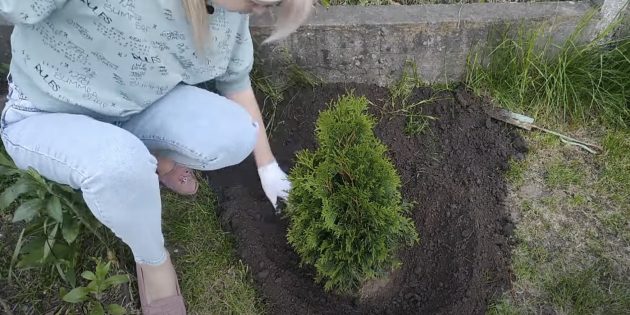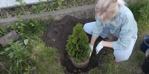 Процесс посадки туи