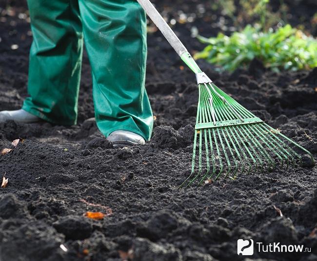 - Сначала земельный участок слегка взрыхляется граблями и делится на одинаковые условные квадраты;